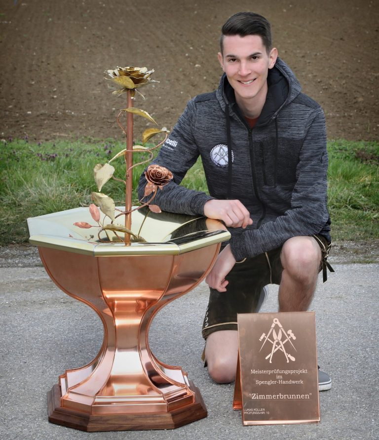 2015 begann Lukas Koller seine Ausbildung im Familienbetrieb und schloss im Jahre 2022 die Meisterprüfung im Spenglerhandwerk als Lehrgangsbester ab.